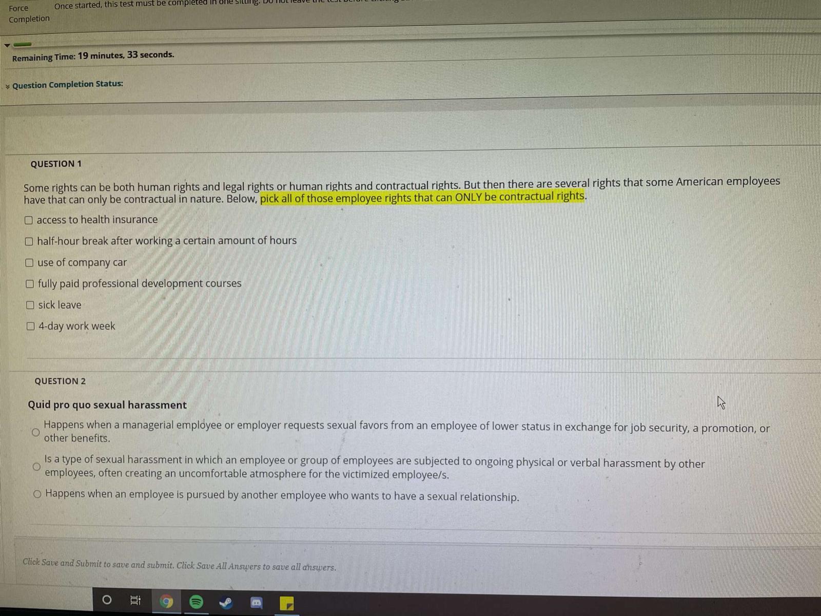 Solved Question 2 Quid Pro Quo Sexual Harassment Happens Chegg Com